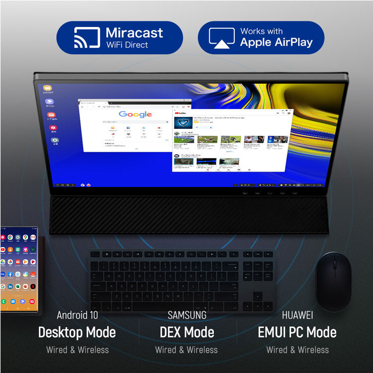 このモニターはワイヤレスビデオキャスティングをサポートしており、スマートフォン、タブレット、またはラップトップからケーブルなしでコンテンツを直接プッシュできます。これにより、会議室、トレーニングスペース、および商用ディスプレイでの設置と日常使用が簡素化されます。Apple AirPlayとMiracast(WiFi Direct経由)との互換性により、ユーザーはプレゼンテーション、ビデオ、またはリアルタイムの画面を迅速かつ安全に共有できます。このケーブルフリー操作により、セットアップ時間が短縮され、ワークスペースが整理され、共同作業環境、モバイルデモンストレーション、および柔軟なシステム統合シナリオに特に適しています。