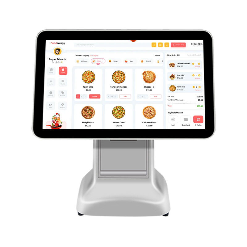内蔵Wi-FiとBluetooth 4.0を搭載したこのPOSターミナルは、柔軟で信頼性の高いワイヤレス接続オプションを提供します。統合されたWi-Fiは、リアルタイムのデータ同期、クラウドベースのアプリケーション、オンライン取引のための高速インターネットアクセスを保証します。Bluetooth 4.0は、バーコードスキャナー、ワイヤレスプリンター、支払いデバイスなどの周辺機器とのシームレスなペアリングを可能にし、システム全体の汎用性を高めます。このワイヤレス機能は、ケーブルの乱雑さを軽減し、設置を簡素化し、忙しい小売、ホスピタリティ、サービス環境での運用効率を向上させます。