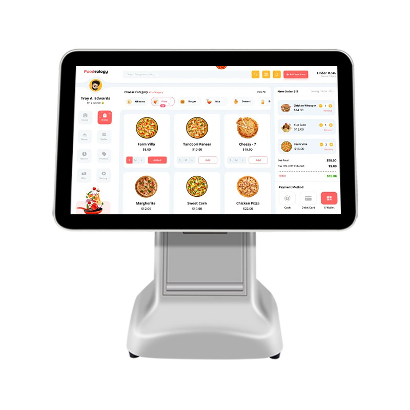 15.6インチスクリーンは、注文、メニュー、プロモーションを簡単かつ効率的に表示できる、大きくクリアなディスプレイを提供します。鮮やかなビジュアルとスムーズなタッチレスポンスにより、ユーザーエクスペリエンスを向上させます。