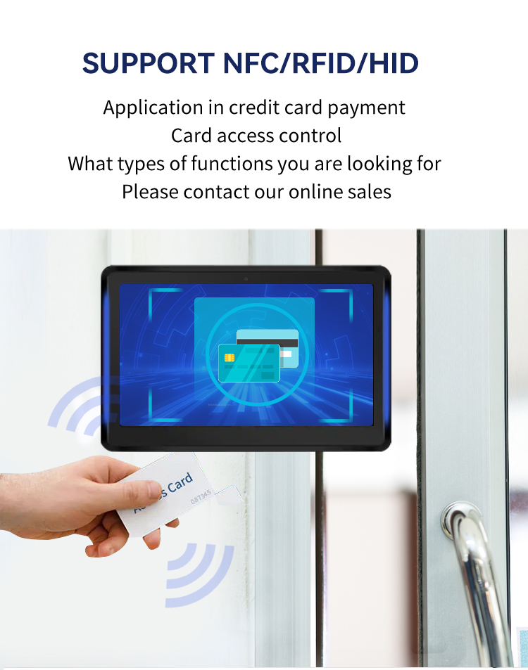 The built-in NFC module enables contactless authentication, payment, or access control. This is ideal for applications such as loyalty programs, employee check-ins, ticketing, or self-service kiosks, helping businesses streamline customer and staff interactions.